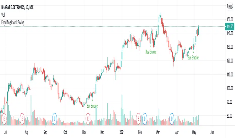 Shows bulling engulfing patterns only if above >50 rsi and Shows Bearish engulfing patterns only if above <50 rsi