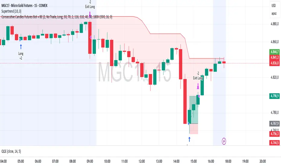 ที่อัปเดต: Consecutive Candles Futures Bot + BE (MGC 15m)