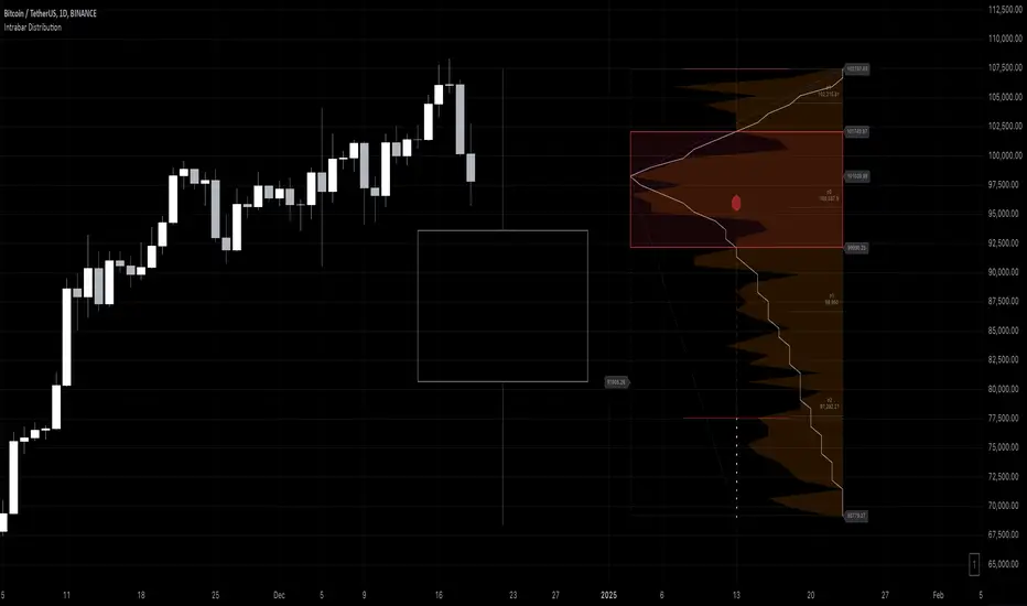 The Intrabar Distribution publication is an extension of the Intrabar BoxPlot publication. Besides a boxplot, it showcases price and volume distribution using intrabar Lower Timeframe (LTF) values (close) which can be displayed on the chart or in a separate pane.