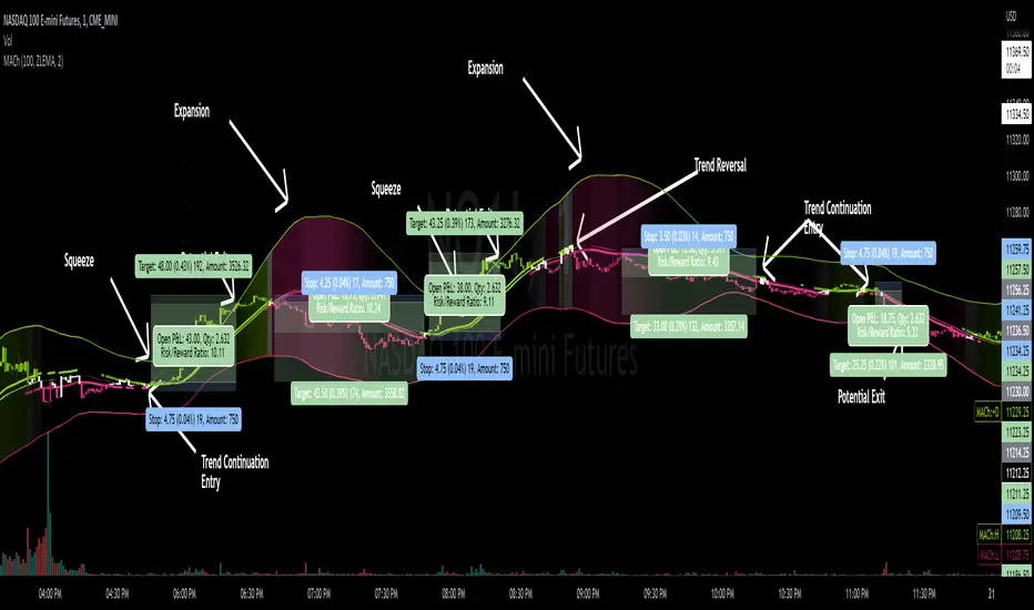 This indicator creates a high and low channel of moving average type selected, it also can draw deviation bands based on the channel for a unique representation of squeezes.