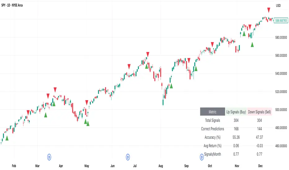 [DEM] Klinger Signal (With Backtesting) is designed to generate buy and sell signals based on the Klinger Volume Oscillator, which combines price movement direction with volume flow to identify potential trend changes and momentum shifts. It also includes a comprehensive backtesting framework to evaluate the historical performance of these signals. The indicator overlays directly on the price chart, plotting signals and displaying performance statistics in a table. The strategy calculates signed volume (positive when HLC3 rises, negative when it falls), applies dual EMA smoothing with configurable fast and slow periods (default 34 and 55), creates a signal line using additional EMA smoothing (default 13 periods), then generates buy signals when the signal line crosses above its own EMA-smoothed version and sell signals on the opposite crossover, combining volume analysis with price momentum to identify institutional money flow changes while tracking signal accuracy, average returns, and frequency through integrated backtesting metrics.