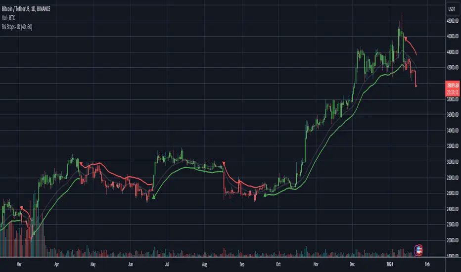 and the relation between the 40/60 levels of the rsi and the atr offset of the 27 ema line
