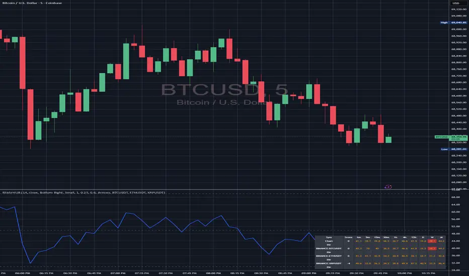This script displays RSI values across 10 timeframes (1m → Monthly) for the chart symbol, plus up to 3 additional watchlist symbols. It helps you quickly see momentum alignment and avoid trading against higher timeframe pressure.