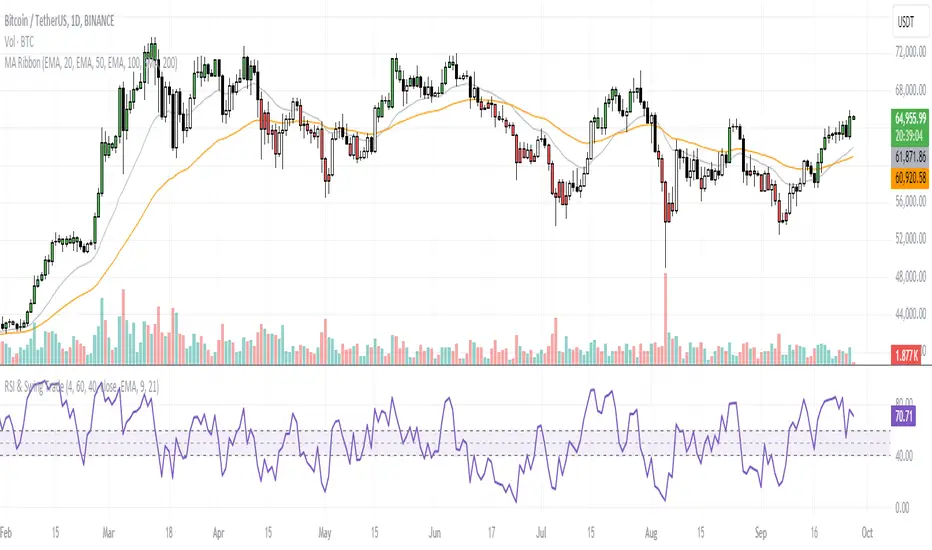 RSI Lower Band (Potential Downtrend): Users can customize the lower RSI level (default is 40) to indicate a potential bearish move.