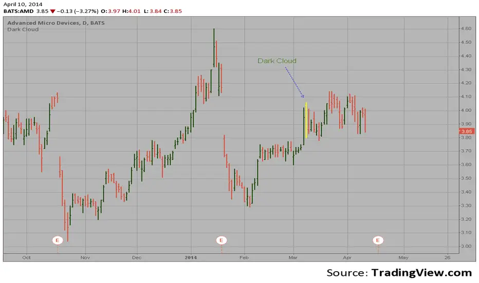 Consists of an up candlestick followed by a down candlestick which opens lower
