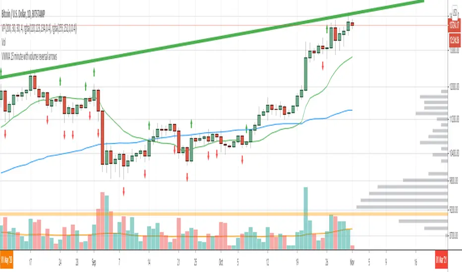 * Arrows indicate 15 minute volumes increased while close reversed over three candles