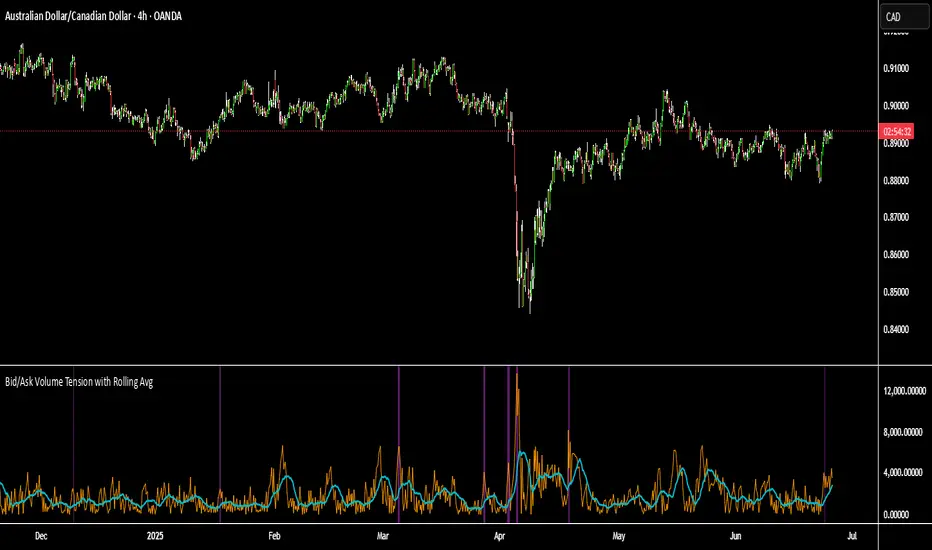 📊 Bid/Ask Volume Tension with Rolling Average
