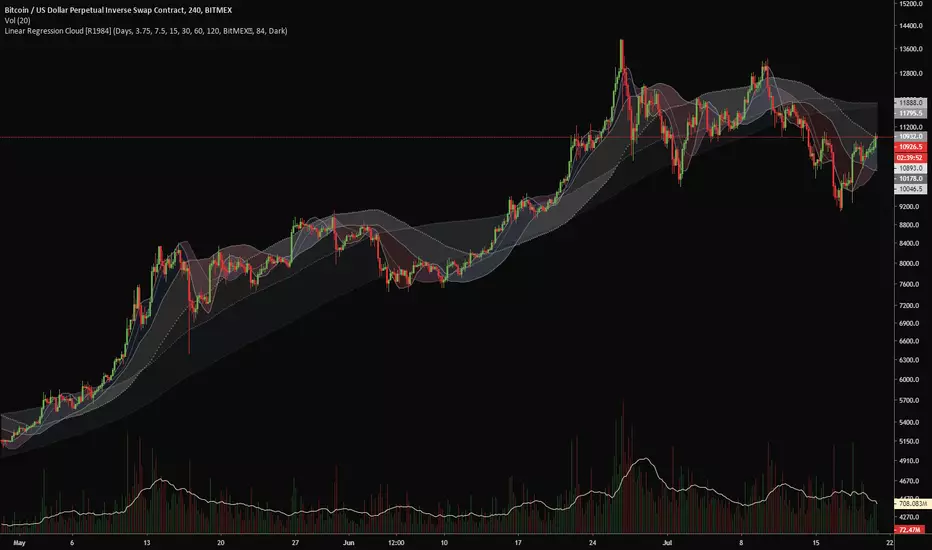 Fixed a bug where the script would fail to compile if the regression length exceeded Pine's 15,000 candle limit. This typically only occurred on low timeframe charts (<15 minute candles).Now if a regression length exceeds the 15K limit, the plot will be disabled. Don't blame me; blame TV for crippling Pine.