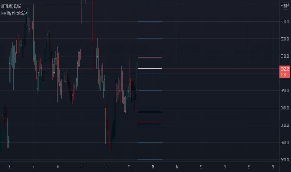 Calculates the strike prices for the Bank Nifty index in steps of 50 and marks the 2 and 3 sigma price levels.