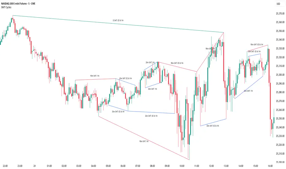 This indicator is for educational and analytical purposes only. SMT Divergence is a concept used to interpret market structure and does not constitute financial advice or a signal to trade. Past performance is not indicative of future results.