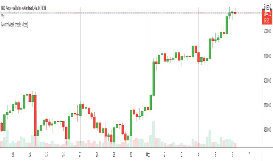 Script inputs that can be customized in Settings for both week and month break lines:- Show on intraday