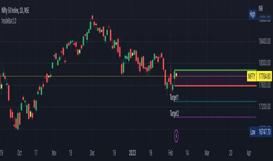 This script is written to identify InsideBar and then plot target 1 and target 2 irrespective the direction of following candles.