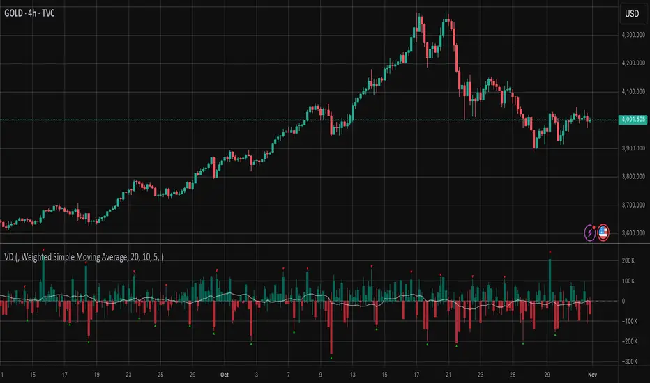 This indicator provides a detailed view of Volume Delta (VD) by analyzing order flow on a lower, intra-bar timeframe. For each bar on the chart, it calculates the net difference between buying and selling volume based on the direction of the intra-bar candles.