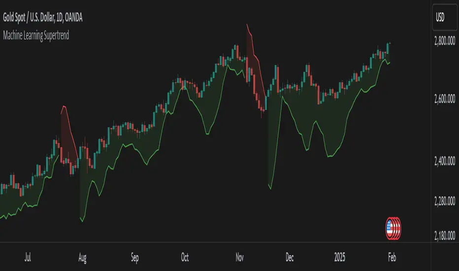 What makes this approach powerful is its ability to adapt to different market conditions. Traditional ATR-based methods use fixed parameters that might not always be optimal, whereas this ML-driven Supertrend continuously refines its estimations based on real-time data. The result is a more intelligent, less lagging, and highly adaptive trend-following tool.
