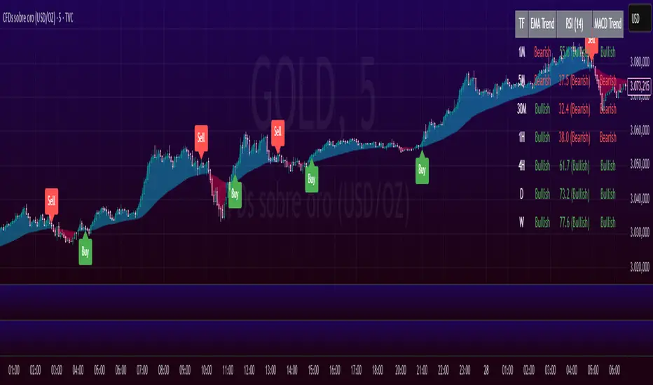 This indicator on TradingView provides a combination of technical analysis through a data table and visual elements on the chart. Its purpose is to provide a comprehensive view of the analyzed asset, facilitating decision-making.