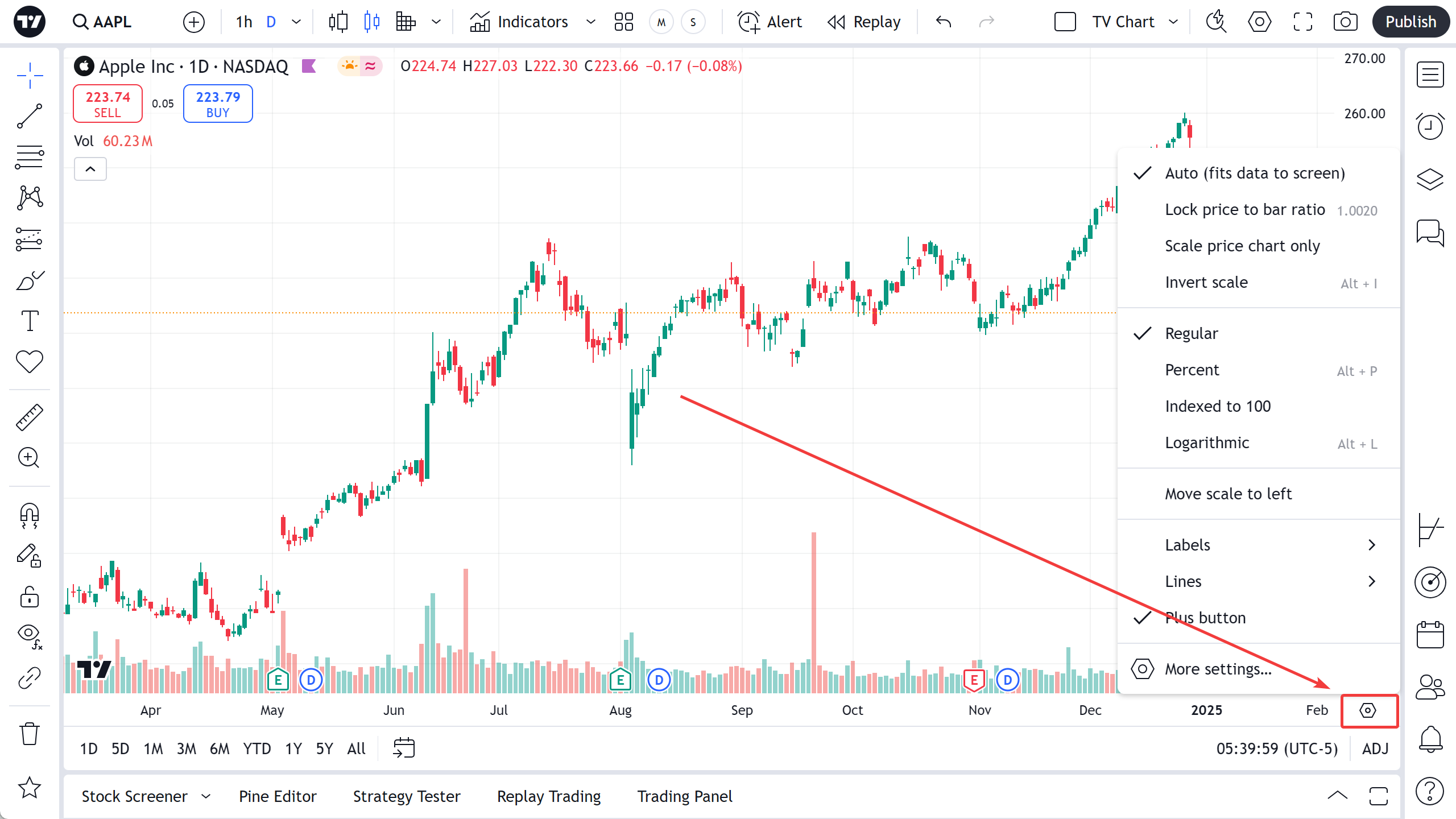 ปุ่มการตั้งค่าสเกลนั้นอยู่บริเวณด้านล่างของสเกลราคา