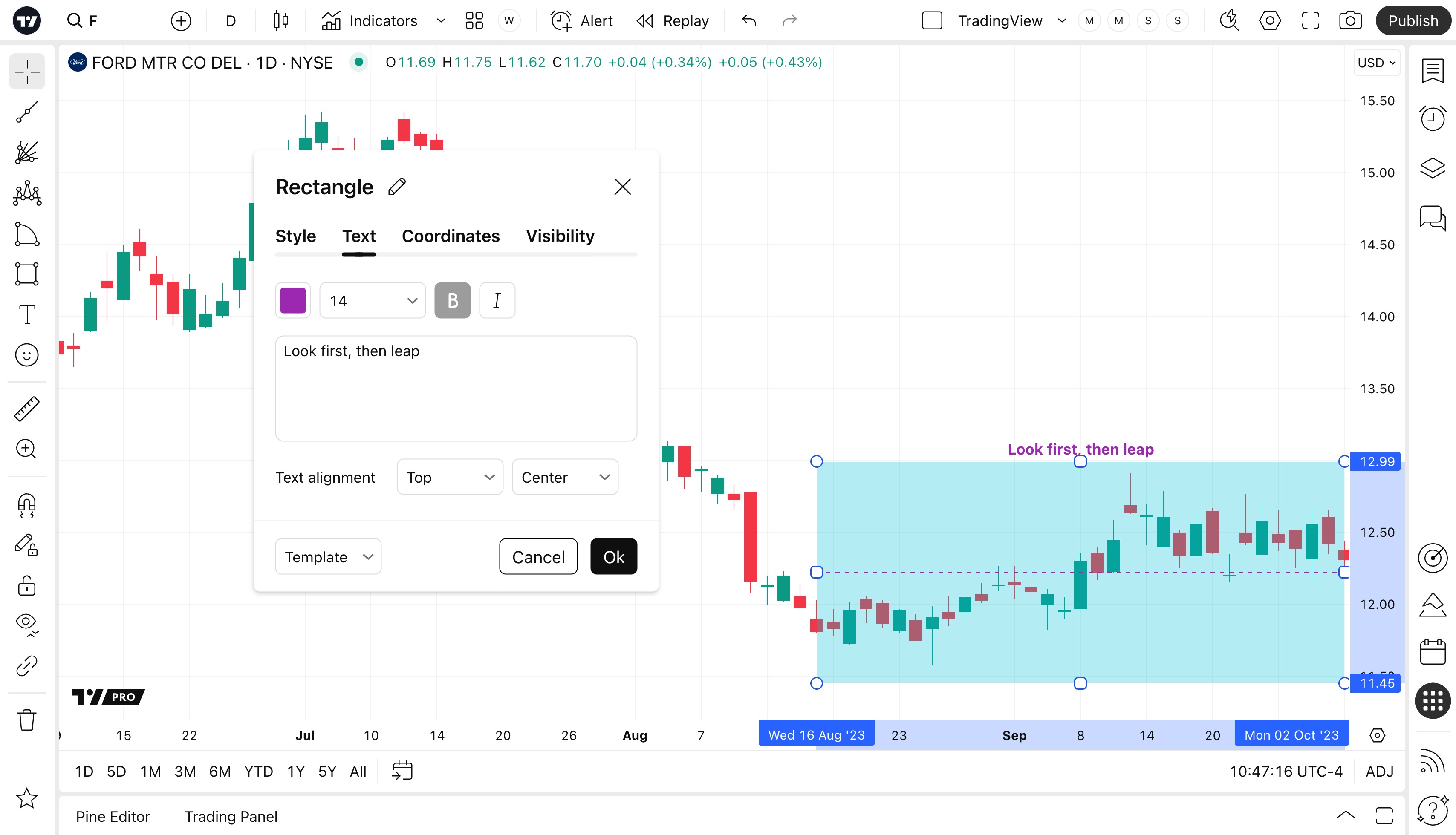 คุณยังสามารถแก้ไขข้อความในสี่เหลี่ยมผืนผ้าบนชาร์ตได้โดยตรง – เพียงแค่คลิกบนช่องข้อความที่อยู่ตรงกลางของรูป จากนั้นคุณก็จะสามารถพิมพ์ได้