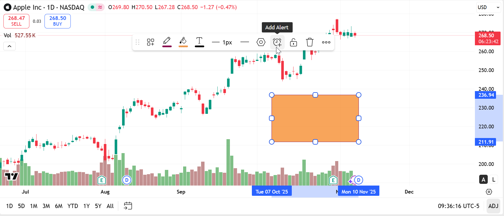 เป็นเครื่องมือง่ายๆ สำหรับการวาดสี่เหลี่ยมบนชาร์ต ใช้เพื่อเน้นบริเวณที่มีความสนใจมาก