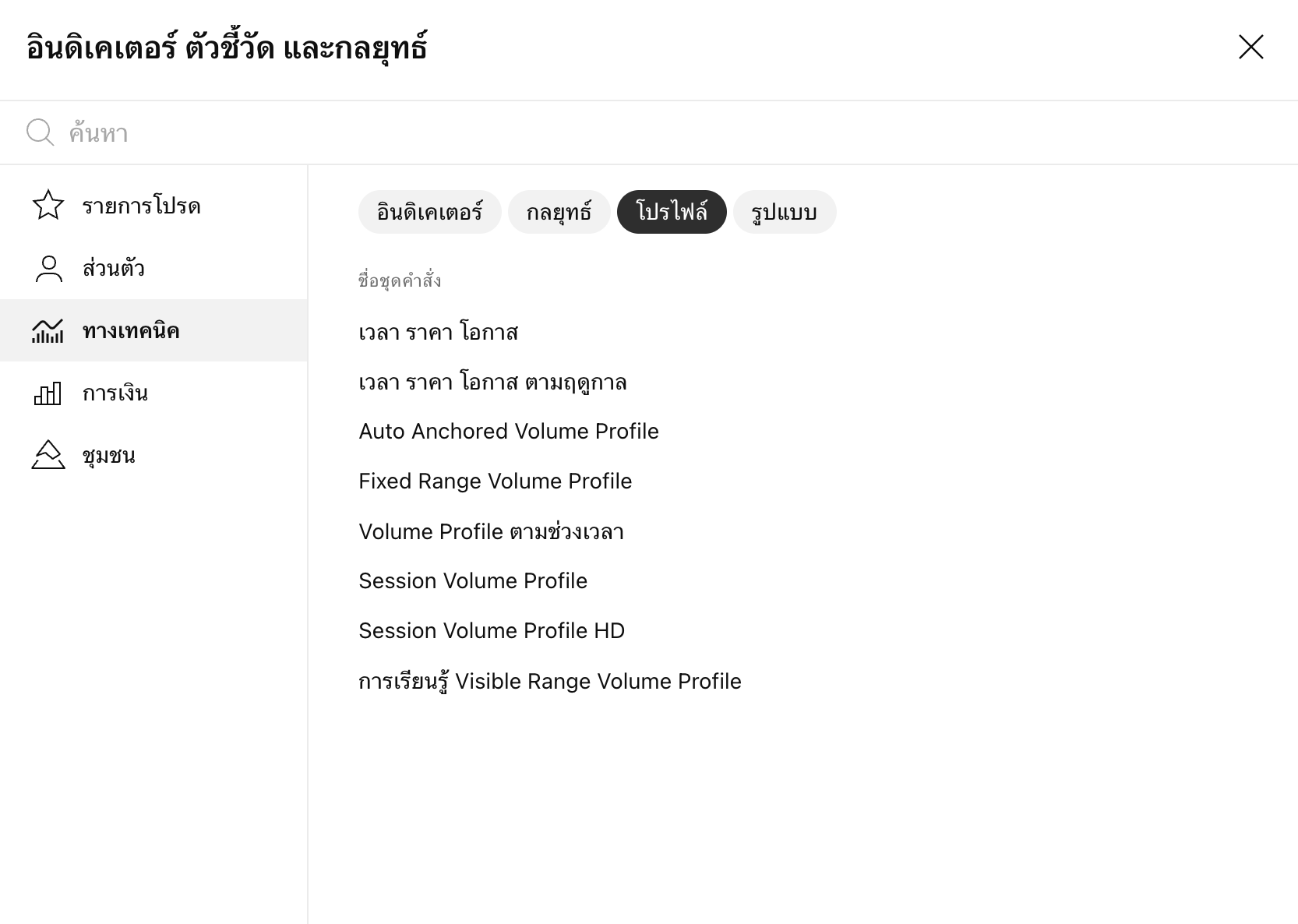ฉันหาอินดิเคเตอร์ Volume Profile ไม่พบ