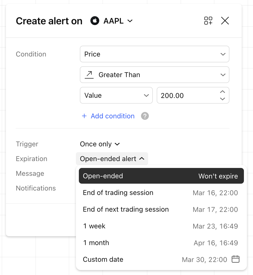 - Open-ended alerts are available for Premium and Ultimate plans only.