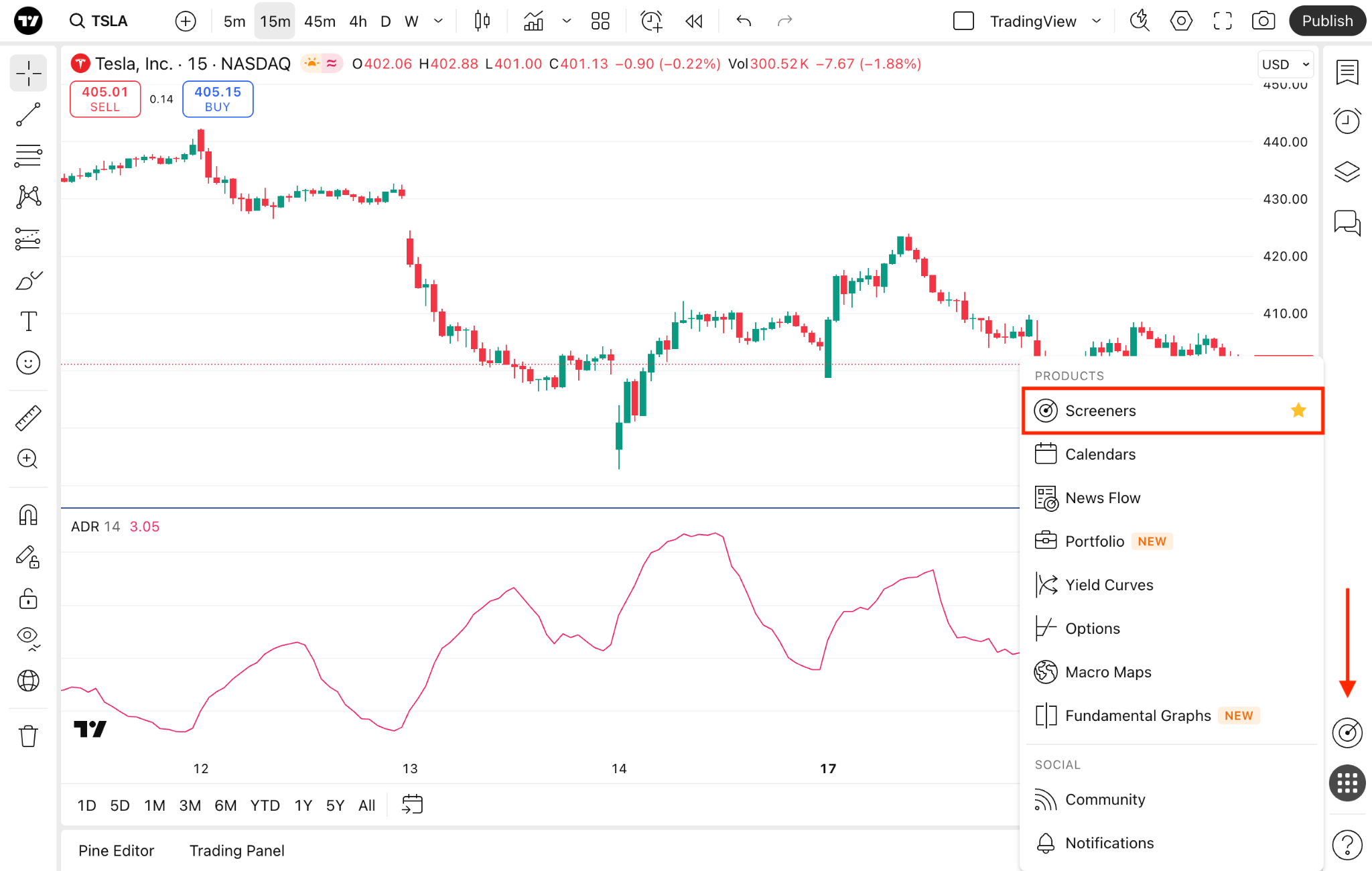 If you want to screen instruments with the Bull Bear Power, you can either open the desired screener from the right toolbar in the "Products" menu or access the standalone screener from the home page.