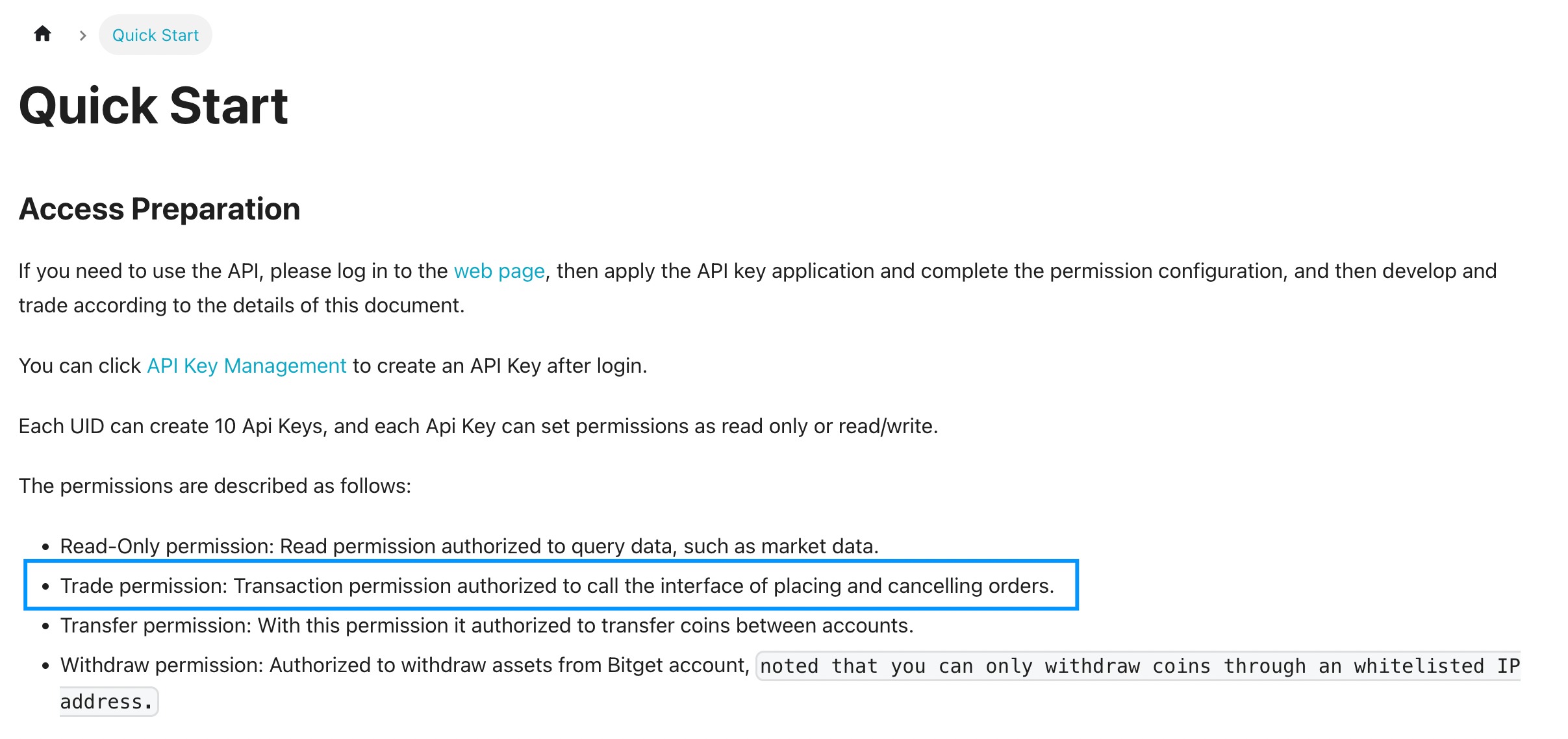 ฉันได้รับข้อความ “Incorrect permissions, need trade permissions” บน Bitget